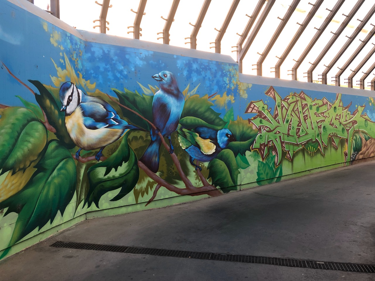 Unser Auftrag war es, die Flächen in einer Kombination aus Motiven mit städtischem Bezug und klassischer Graffiti-Kunst neuzugestalten. 15 Künstler der Region gestalteten an einem Wochenende eine Gesamtfläche von rund 600qm.